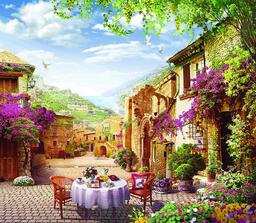 - Рисунок город, цветы, старый город, горы, Италия, панорама, улочки, дом, лето, архитектура, Греция, дворик, Европа, горшок с цветами, Тоскана, улочки Греции, улочки Лацио, улочки Прованса, улочки старого города