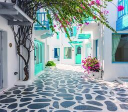 - Рисунок город, цветы, старый город, Италия, улочки, дом, архитектура, Греция, дворик, Европа, Санторини, горшок с цветами, улочки Греции, улочки старого города