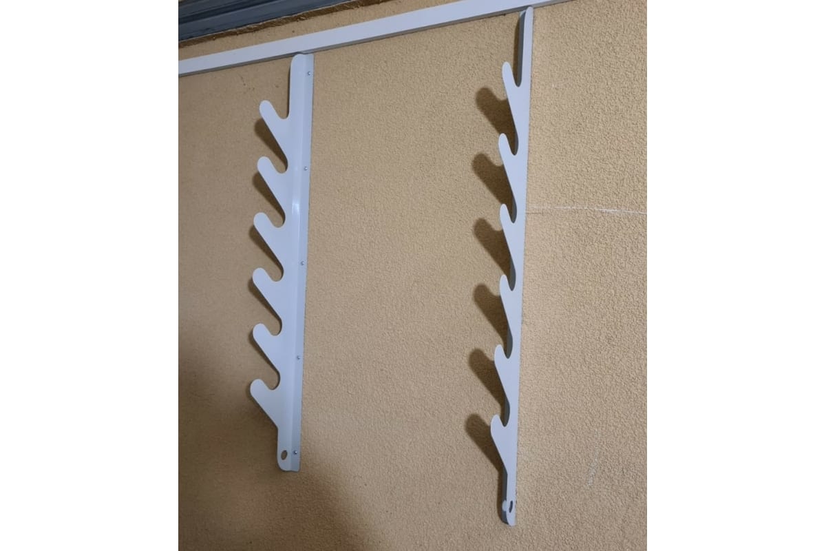 Держатель садового инструмента АВТОЭЛЕКТРИКА большой, серый 00-00000706 предназначен для хранения садового инвентаря и удочек. Крепится к стене с помощью саморезов и дюбелей, которые идут в комплекте.