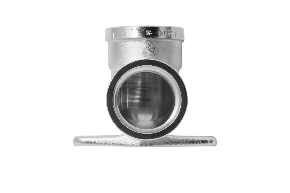 Угольник 1/2" в/в с креплением MPF ИС.072238 предназначен для соединения элементов трубопровода под углом 90° в системах холодного и горячего водоснабжения и отопления