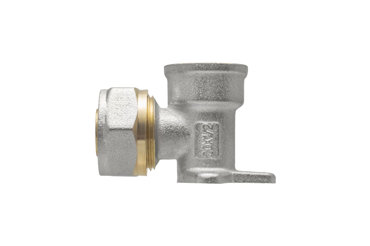 Угольник водорозетка с креплением 20х1/2" ц/г RVC ИС.072579 предназначен для создания разъемного соединения под углом 90° в системах водоснабжения и отопления.