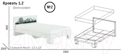 Полуторная кровать МСТ. Мебель Фест №2 120x200