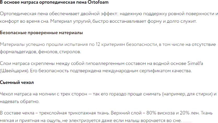 • Тип конструкции матраса беспружинный