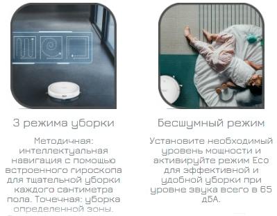 • Траектория движения вдоль стен, точечная уборка, автоматическая уборка