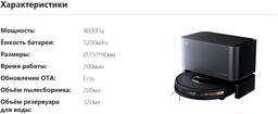 В комплектеконтейнер-пылесборник, контейнер для влажной уборки, зарядная станция, щеточка для очистки, документация, салфетки из микрофибры, боковая щетка, основная щетка, контейнер для сухой уборки