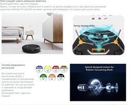 • В комплекте зарядная станция, адаптер питания, пульт ДУ, документация, боковая щетка (2 шт), ткань для влажной уборки, фильтр (HEPA)