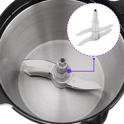 Измельчитель мощностью 350 Вт. 3 режима работы: смешивание, измельчение, взбивание. Двойной нож из нержавеющей стали. Стальная чаша объемом 3,5 л. 3 скорости работы. Прибор легко и быстро моется, так как конструкция полностью разборная. Комплектация: нож, венчик для взбивания, корзина для смешивания, а также крышка чаши измельчителя для безопасной работы и крышка съёмной корзины.