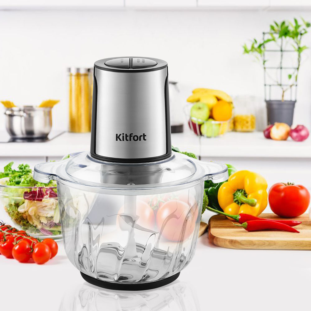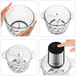 Измельчитель мощностью 400 Вт. Механическое управление. 2 скорости. Двойной нож из нержавеющей стали. Защитные кожухи для ножей. Стеклянная чаша объемом: 2,3 л. Материал корпуса: металл/пластик. Благодаря резиновой подкладке под чашу измельчитель меньше скользит по столу. Измельчитель легко и просто мыть, так как все части разборные.