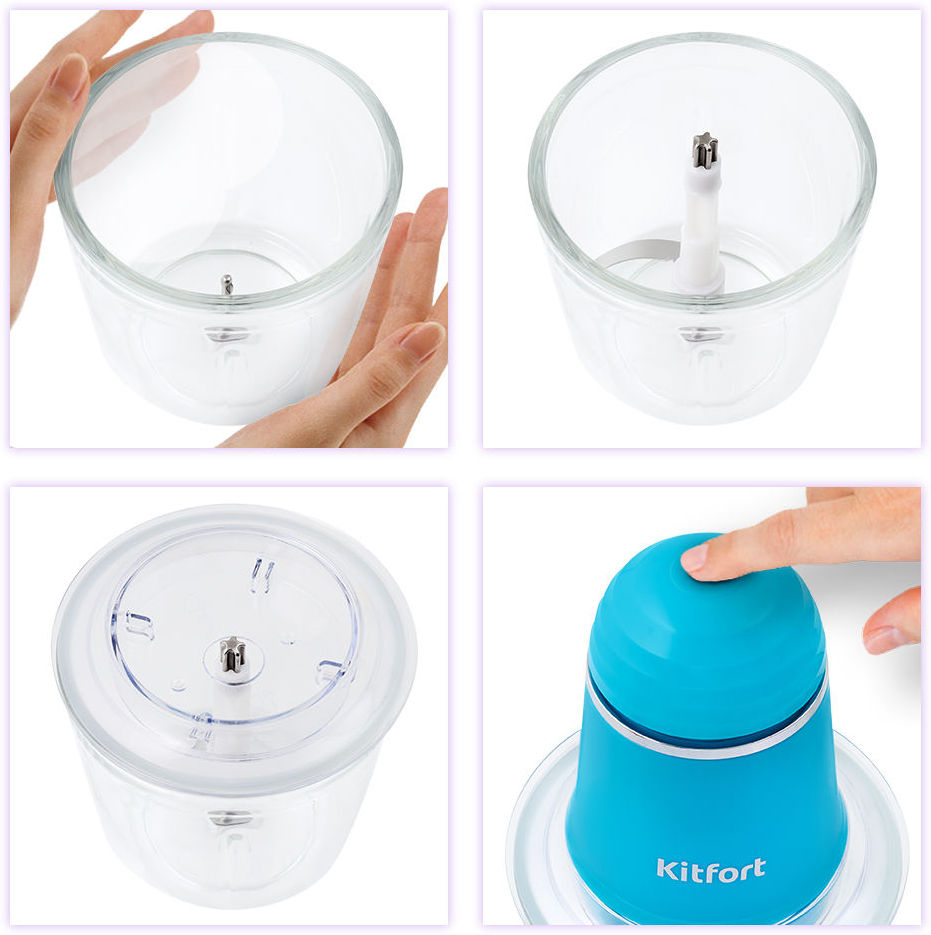 Измельчитель мощностью 200 Вт. Нож из нержавеющей стали. Стеклянная чаша объемом: 0,5 л. Материал корпуса: пластик. Измельчитель легко и просто мыть, так как все части разборные.