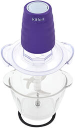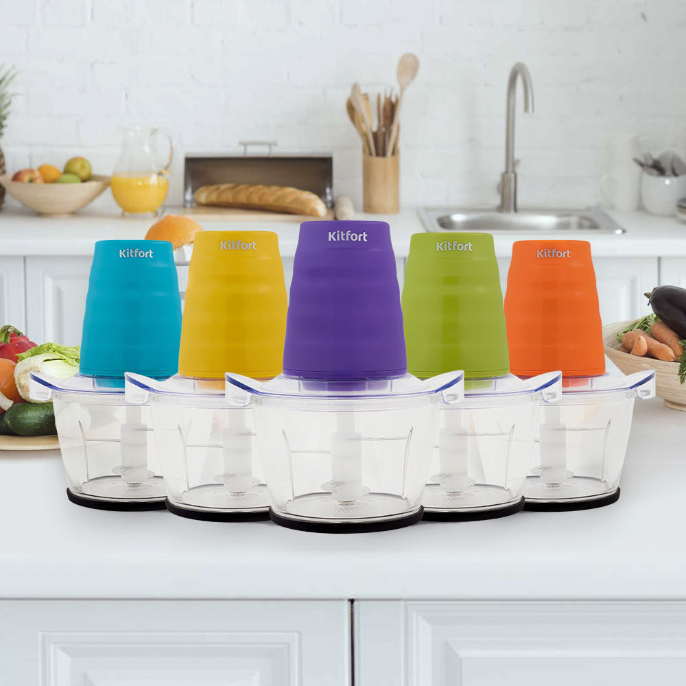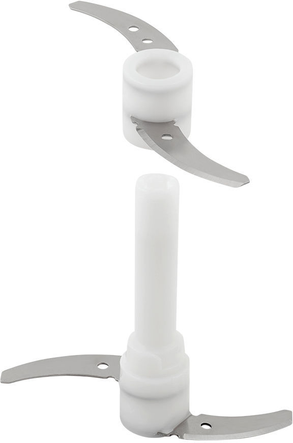 Измельчитель мощностью 400 Вт. Двойной нож из нержавеющей стали. Защитные кожухи для ножей. Стеклянная чаша объемом: 1 л. Материал корпуса: пластик. Измельчитель легко и просто мыть, так как все части разборные.
