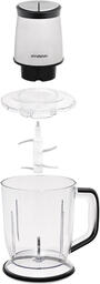 Измельчитель мощностью 400 Вт. Механическое управление. 2 скорости. Нож из нержавеющей стали. Пластиковая чаша объемом 1,5 л. Материал корпуса: нержавеющая сталь/пластик. Импульсный режим.