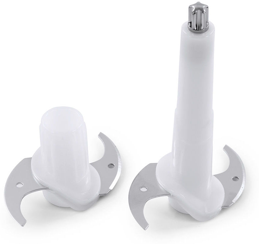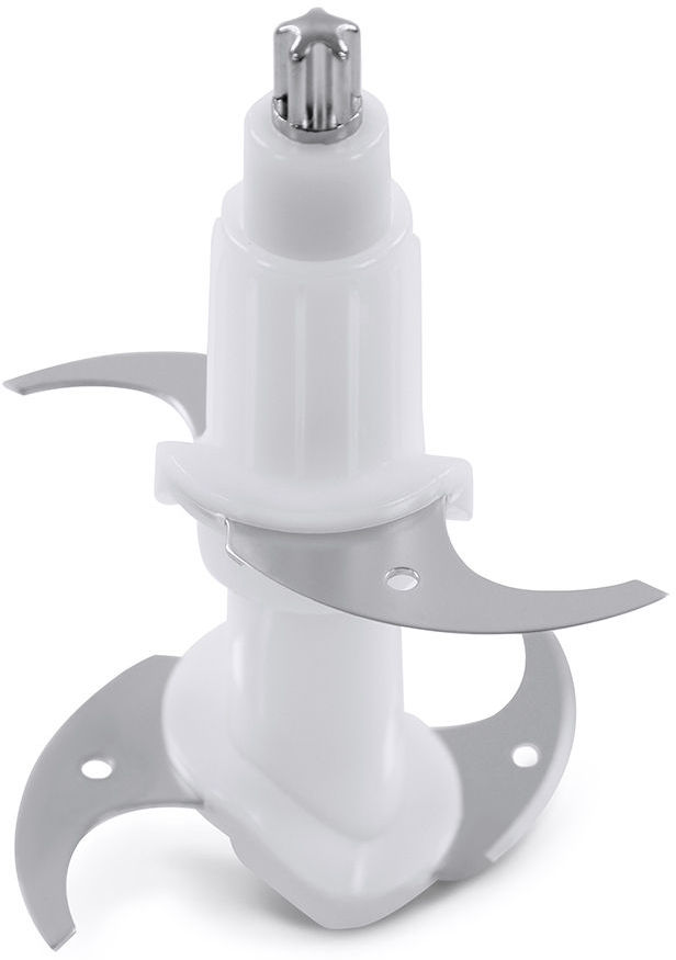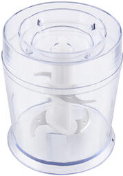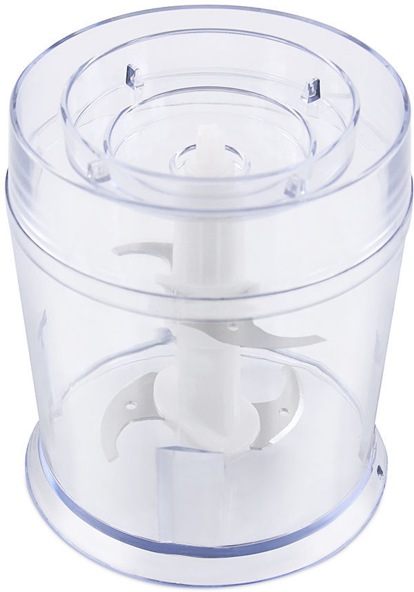 Измельчитель мощностью 700 Вт. Пластиковая чаша объемом 0,6 л. 1 скорость. 2 съемных ножа из нержавеющей стали.
