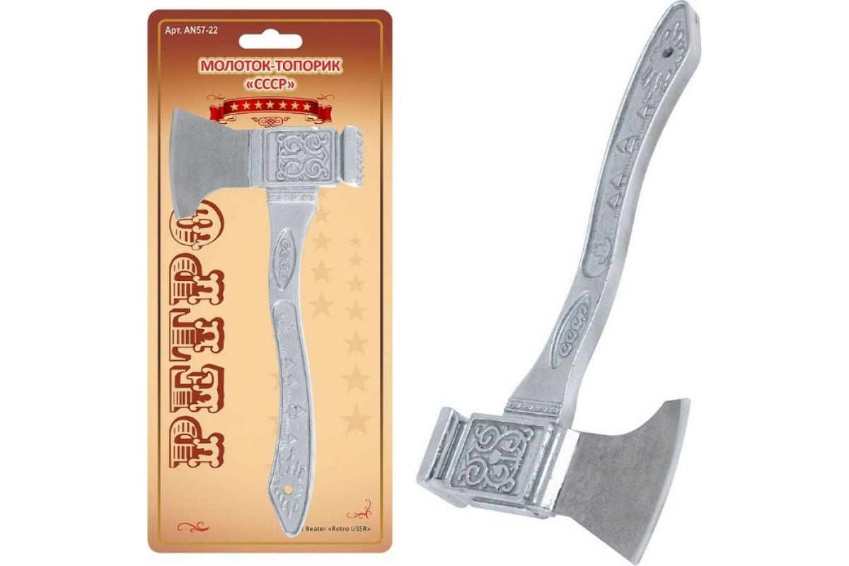 Молоток-топорик выполнен в советской стилистике, понятен в использовании, удобен в хранении.