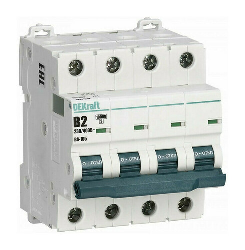 Автоматический выключатель DekRaft ВА-105, 4 полюса, 2А, В, 10 кА 13137DEK DEKraft ВА-105