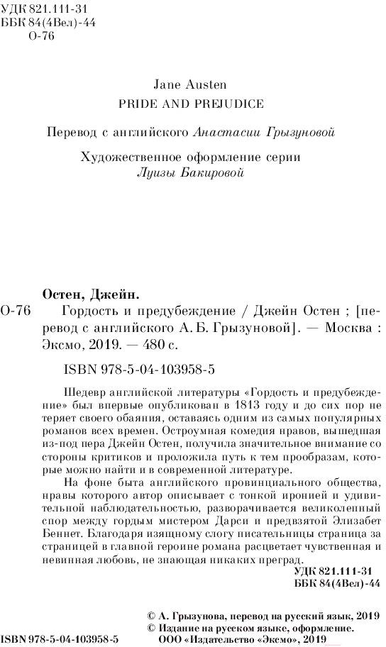 Книга Эксмо Гордость и предубеждение / 9785041039585 (Остен Дж.)