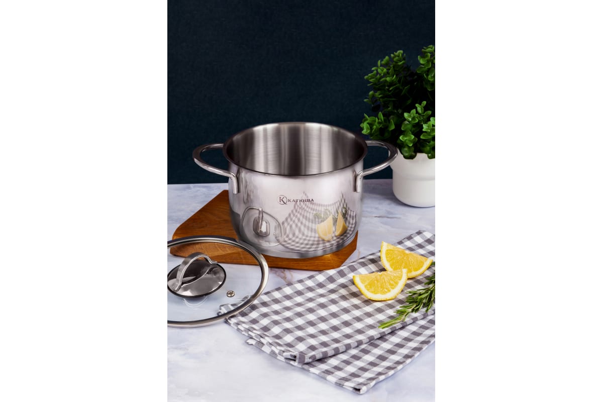 Кастрюля КАТЮША Platinum нержавеющая сталь, 24x15,5 см, 6,5 л, стеклянная крышка 200-240