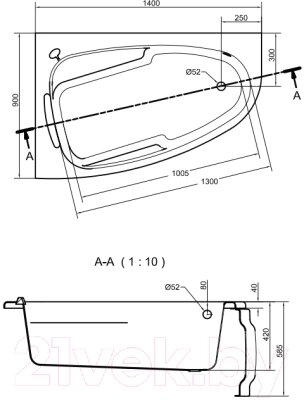 Ванна акриловая Cersanit Joanna 140x90 L / 63334