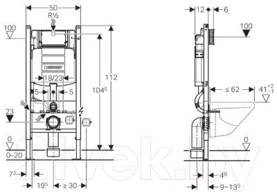 • Ширина инсталляции 50 см