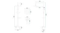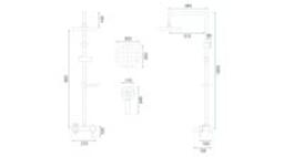 • В комплекте заглушка, держатель, душевой шланг, верхний душ, мыльница, стойка для душа, лейка ручная, излив, крепления, душевой кронштейн