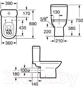 • Высота с бачком 75 см