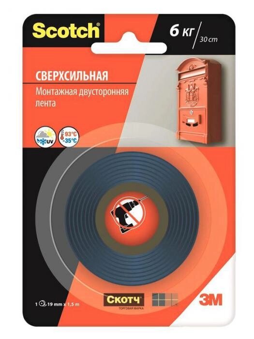 Лента монтажная 3M Scotch Двухсторонняя, акриловая 19mm x 1.5m 4002-1915