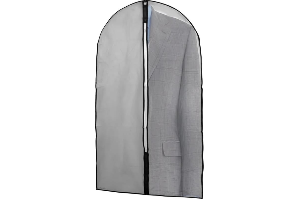 Оснащен молнией, что позволяет без труда снять одежду с плечиков, полностью открывая чехол.