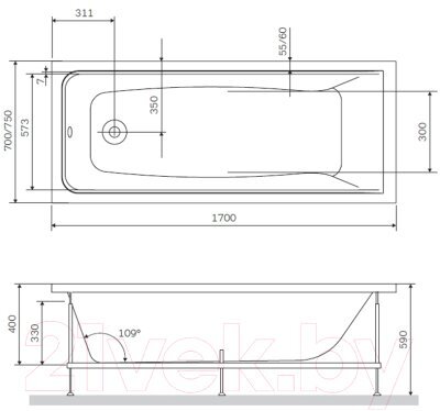 Ванна акриловая AM. PM Gem W90A-170-070W-A