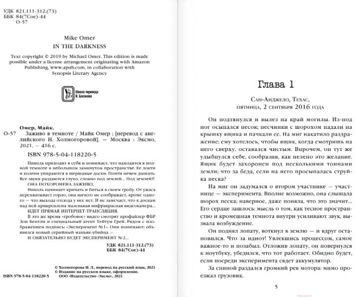 Книга Эксмо Заживо в темноте / 9785041182205 (Омер М.)
