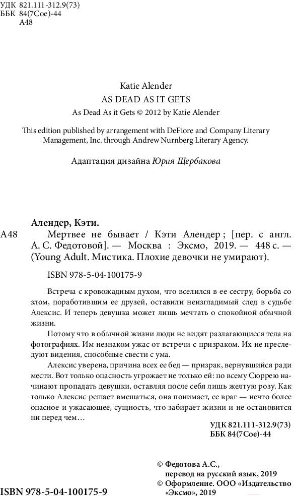 Книга Эксмо Мертвее не бывает (Алендер К.)