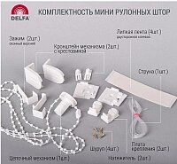 • Комплектация штора 1шт., цепочный механизм 1шт., зажим оконный верхний 2шт., кронштейн механизма с крестовиной 2шт., плата кронштейна 2шт., липкая лента 4шт., струна 1шт., плата крепления 2шт., натяжитель в сборе 2шт., скоба 2шт., шуруп 3х10 4шт,