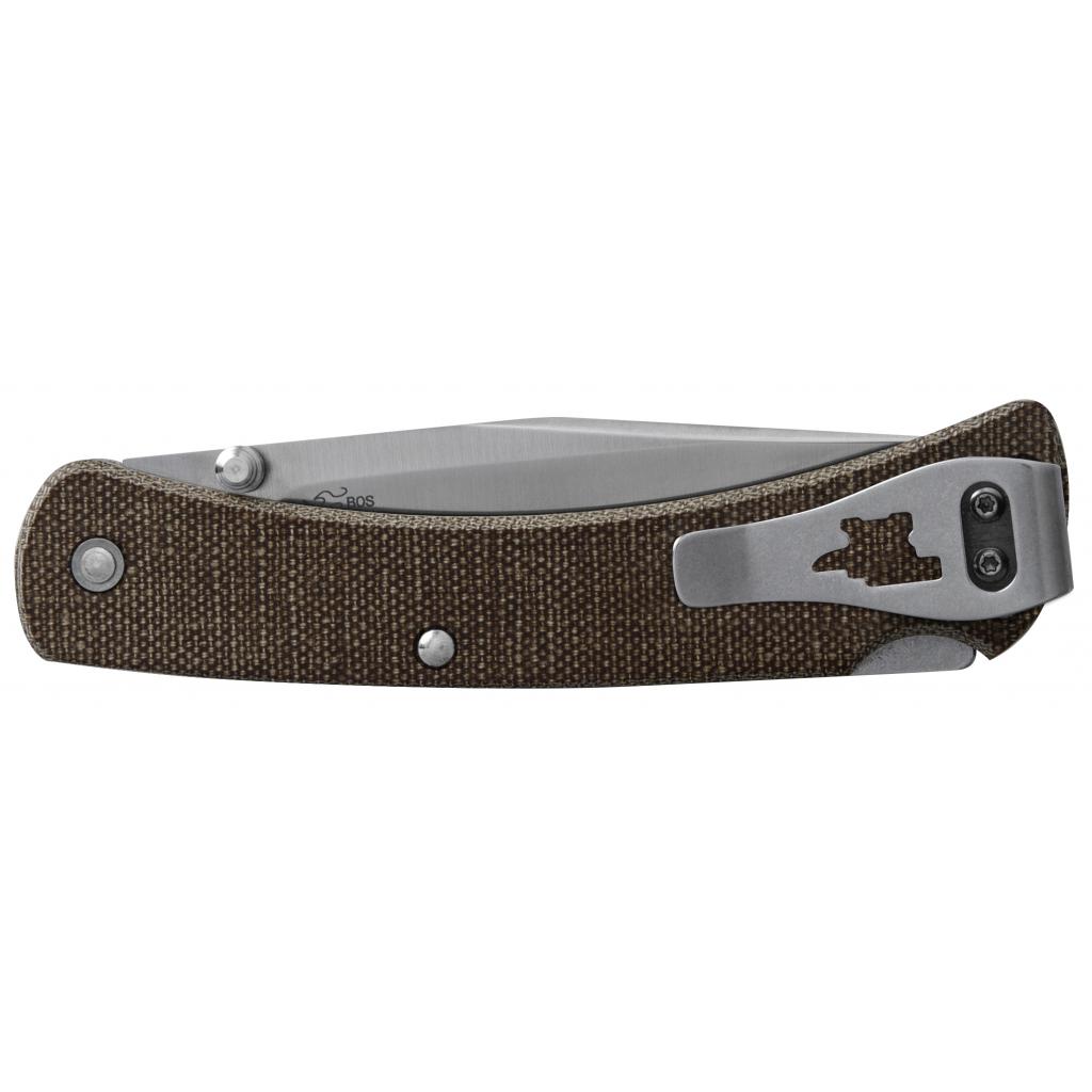 Новинка! Нарешті, легендарний Buck 110 можна з легкістю носити на кишені! Клинок виготовлений з порошкової американської сталі S30V , а рукоять з G10 істотно втратила в об’ємі, вазі і обзавелася дуже зручною двохпозиційною кліпсою. Бонусом є можливість відкриття однією рукою (правою\лівою) за допомогою шпенька.