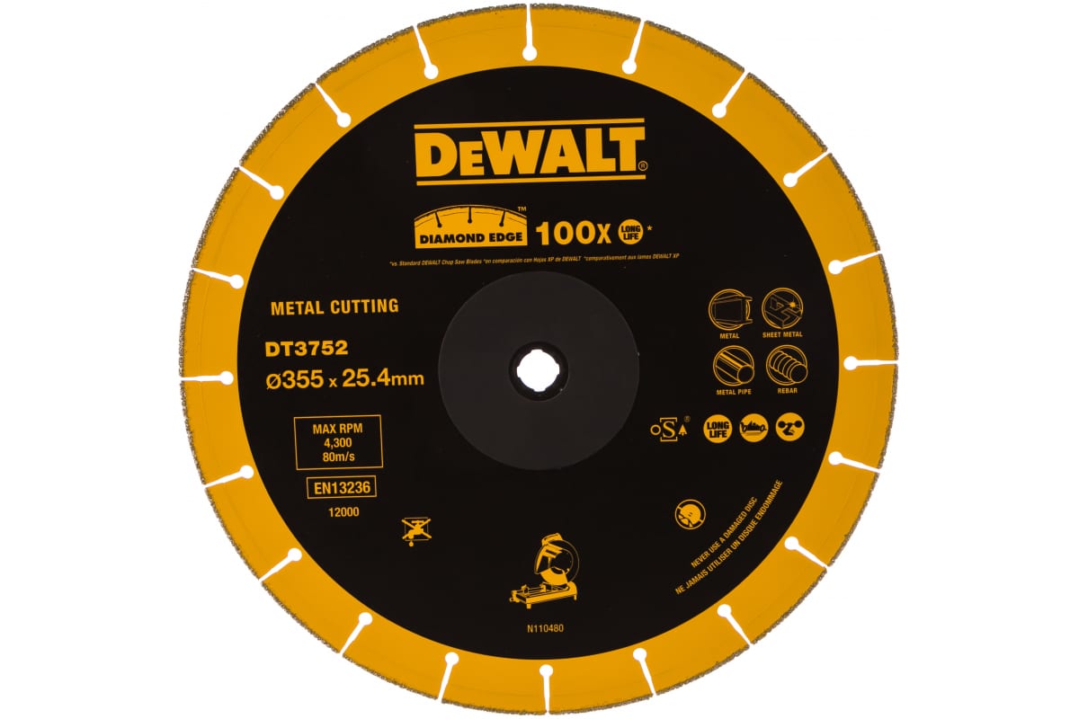 Диск алмазный сегментный (355х25.4х3.5 мм) для сухого реза по металлу DEWALT DT 3752