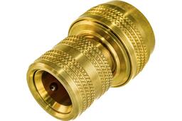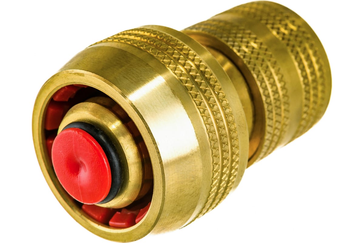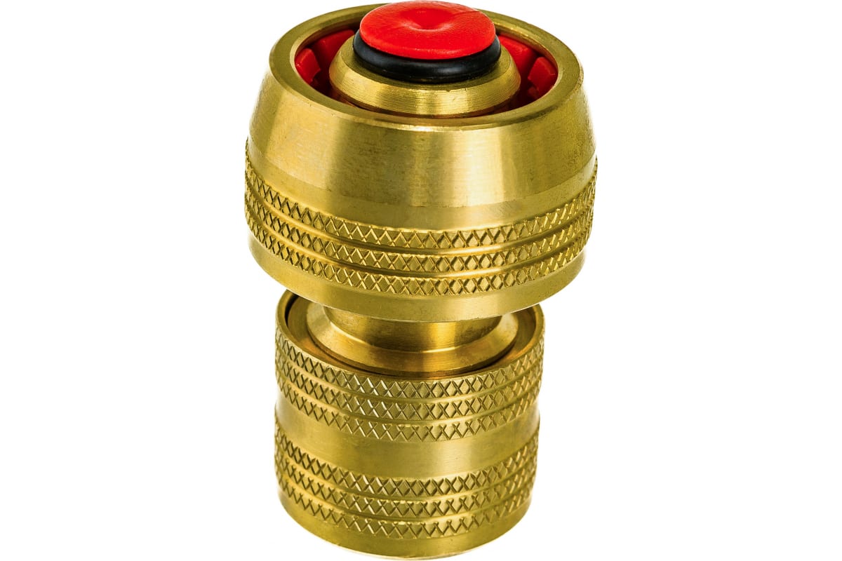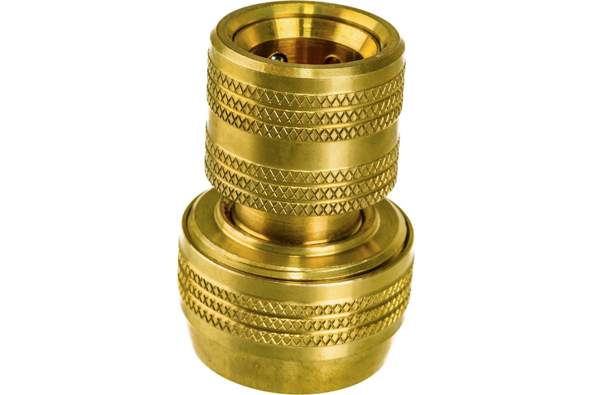 Соединитель "шланг-насадка" 4246-55006B RACO с автостопом используется с системами полива для соединения поливочного шланга с различными насадками. Соединитель выполнен из латуни, которая прошла процесс полировки и не подвергается химическим и механическим воздействиям. С помощью приспособления осуществляется легкая и быстрая смена насадок, когда это необходимо. Функция "автостоп" автоматически перекрывает подачу воды при снятии насадки, что обеспечивает удобство и исключает экономию воды.