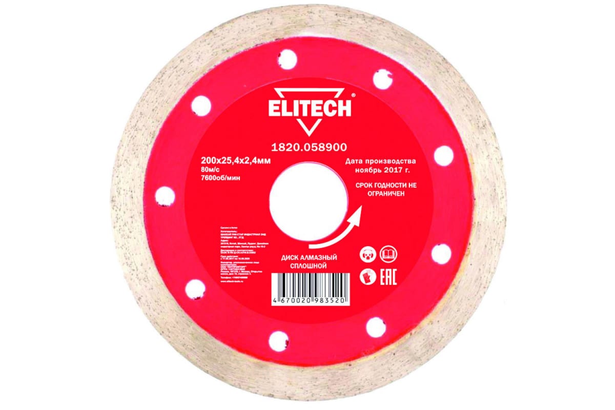 Диск алмазный отрезной сплошной (200х25.4 мм) Elitech 1820.058900