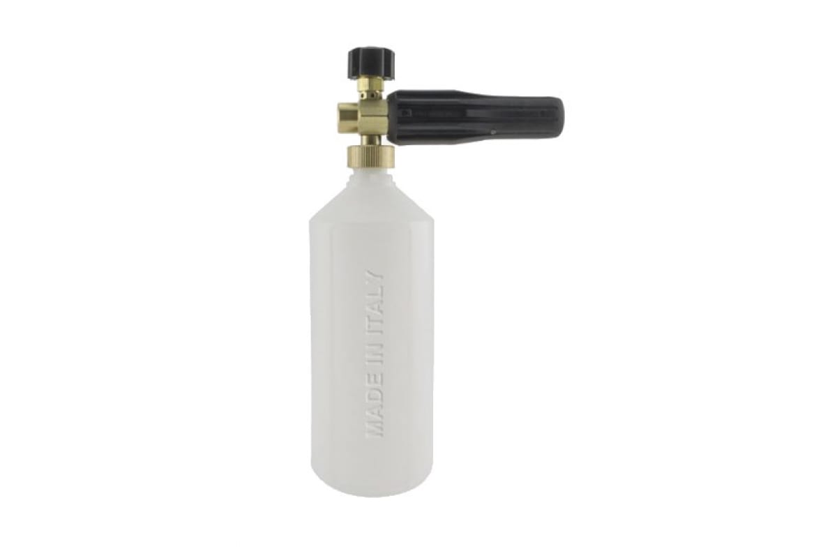 Пенная насадка IDROBASE CDR.0873-Q используется совместно с мойками высокого давления. Применяется для образования активной пены при бесконтактной мойке авто- и мототехники. Конструкция данной модели отличается возможностью регулировки геометрии струи и мощности подачи струи. Надежность и долговечность обеспечивается за счет редуктора, который выполнен из металла. Насадка соединяется с пистолетом с помощью переходника, который не входит в комплект и приобретается отдельно.