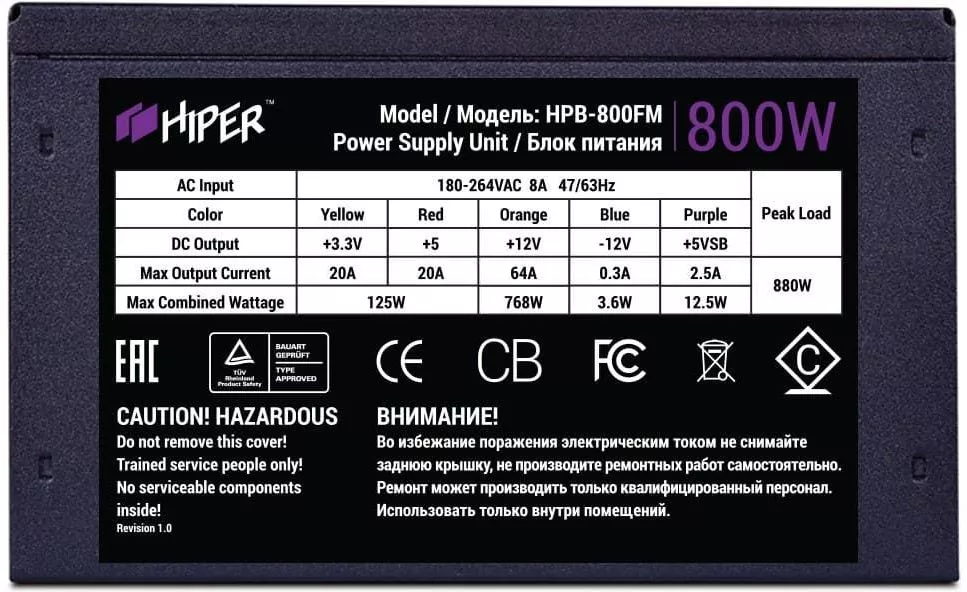 800 Вт, PFC - активный, 80 PLUS - бронзовый, 6-pin PCI-E - 4, модульное подключение кабелей , система охлаждения 1 вентилятор.
