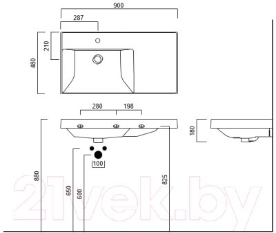 Умывальник Kerama Marazzi Cubo 90 R / CU. wb.90rh