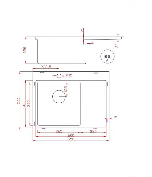 • Форма мойки прямоугольная