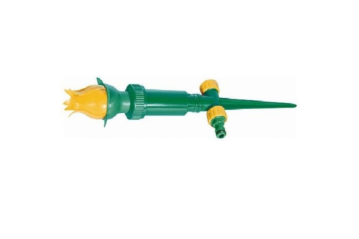 Пластиковый разбрызгиватель на пике "Тюльпан" PALISAD MATRIX 65422 предназначен для стационарного полива на садовых, дачных, приусадебных участках, в парках, скверах и т.д. Изготовлен из прочного пластика, имеет штуцерную посадку и штырь-пику для надежной фиксации в почве. Выполнен в виде цветка-тюльпана и в процессе работы имитирует его распускание. При подаче напора головка приподнимается и раскрывается благодаря находящейся внутри нее вращающейся крыльчатке. Создается эффект дождя, благодаря которому обеспечивается круговой равномерный полив площади до 75 кв.м.