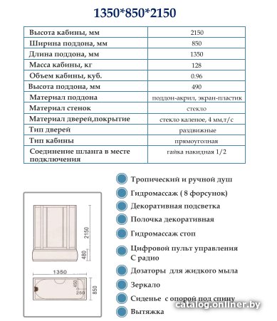 - Тип душевая кабина