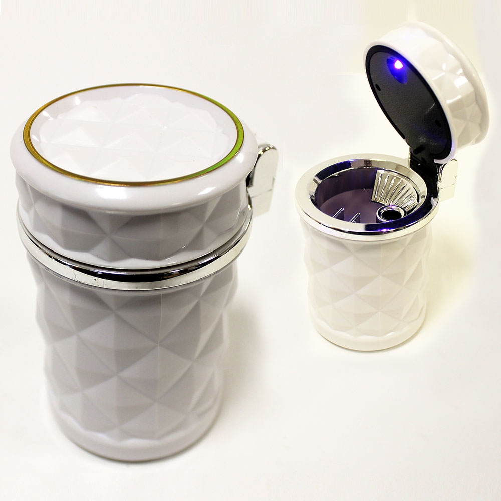 Пепельница автомобильная c LED подсветкой. Ширина: 67мм. Цвет: белая рифленая с хром накладками. Не содержит активные электронные цепи.