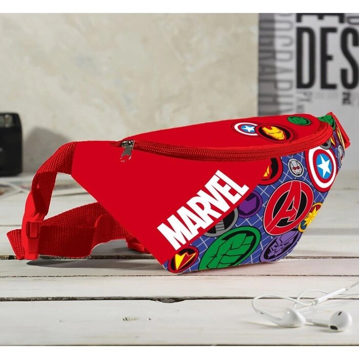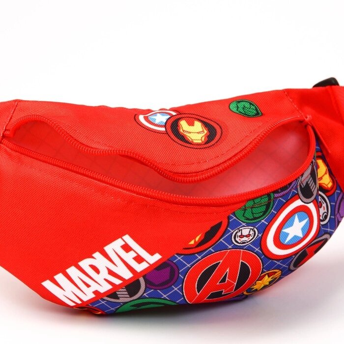 Cумка на пояс "MARVEL", 25*6*13, отд на молнии, без подклада, красный