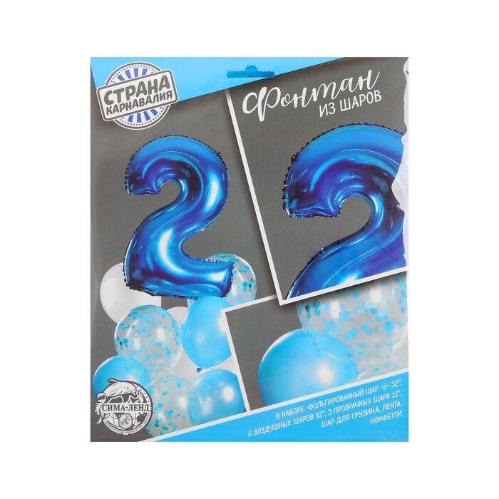 Фонтан из шаров "2 годика", для мальчика, с конфетти, латекс, фольга, 10 шт.