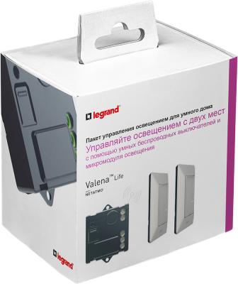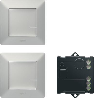Коллекция умных устройств Valena Life with NETATMO. Пакет для управления освещением c 2х мест. Микромодуль реле 300 Вт 240В + два умных беспроводных 1-клавишных выключателя. Цвет Алюминий