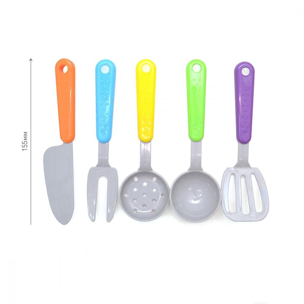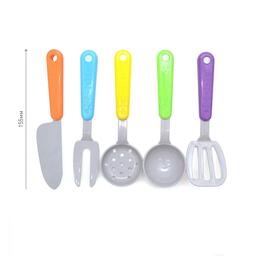 • Посуда в комплекте нож, кухонные приборы (половник, шумовка, лопатка с прорезями, вилка)