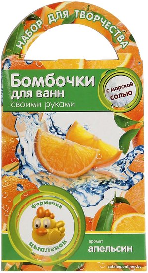 - Состав набора гипоаллергенный апельсиновый ароматизатор, морская соль, лимонная кислота, пищевая сода, пищевой краситель, формочка