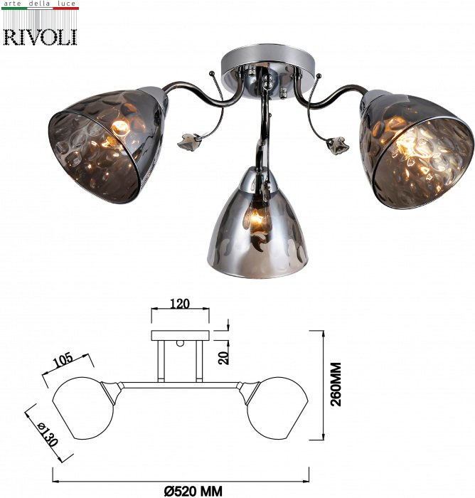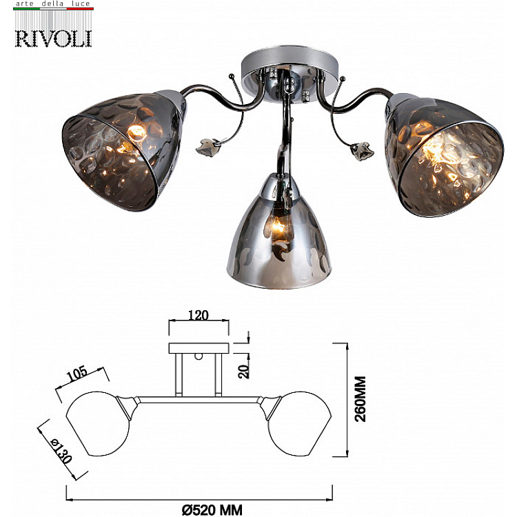 Производитель светильника - Rivoli. Светильник имеет цоколь E27, рабочее напряжение 220V. Материал корпуса изделия - Металл/Стекло. Цвет арматуры: Хром,Черный/Дымчатый. Светильник рассчитан на площадь 9кв.м. Светильник подойдет для устройства основного и акцентного освещения. Купите Потолочная люстра Jennifer 9104-303 по выгодной цене с быстрой доставкой на Eurosvet.by.