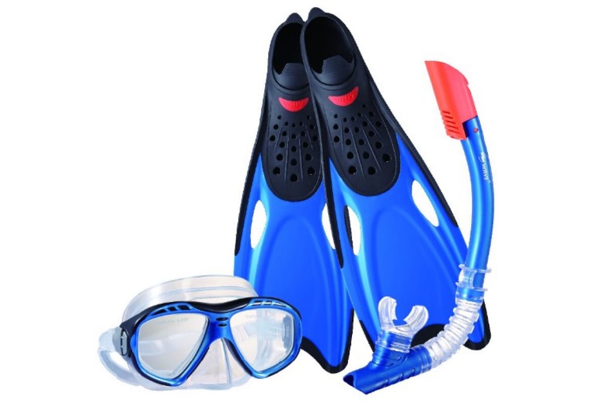 Комплект для плавания: маска + трубка + ласты WAVE синий, р.40-41 MSF-1396S25BF71 незаменим на летнем отдыхе. Маска обеспечивает широкий угол обзора и исключает проникновение воды внутрь благодаря силиконовому обтюратору. Трубка оснащена силиконовым клапаном для продувки от воды. Ее силиконовый загубник закреплен под идеальным углом - для удобного использования. Ласты с закрытой пяткой выполнены из качественного эластомера, поэтому прослужат долгое время. Улучшенная форма калоши удобно облегает ногу, а дренажные отверстия способствуют уменьшению сопротивления.