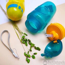 Бутылочка для воды и других напитков КК0159 LIFESTYLE anatomicс трубочкой и шнурком, 350 мл, 3 Розовый
