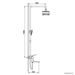 • Комплектация верхний душ, штанга, ручной душ (лейка), держатель лейки, шланг, смеситель, излив для ванны